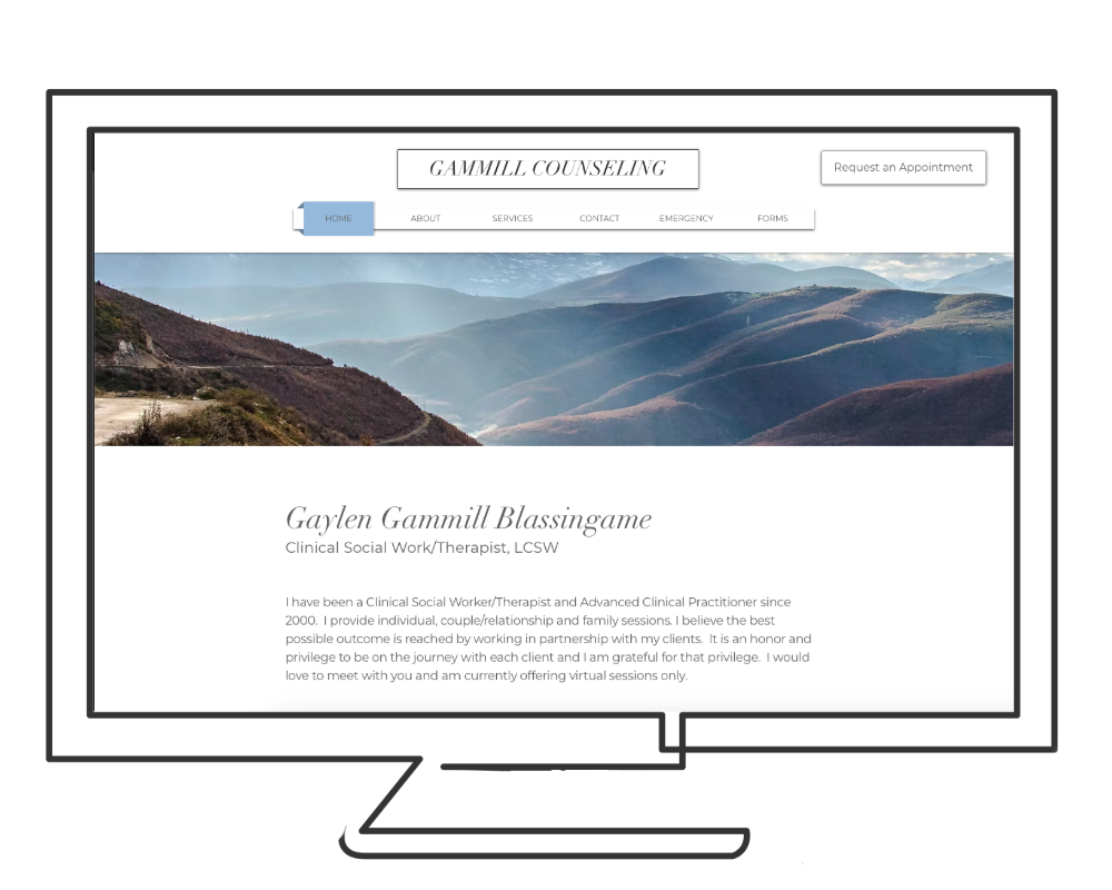 This professional counselor had started a WIX site she never finished. I took over and customized the template she was working on. We incorporated colors, images and fonts that she loved to create a simple, informative website to give her an online presence for professionalism and credibility.